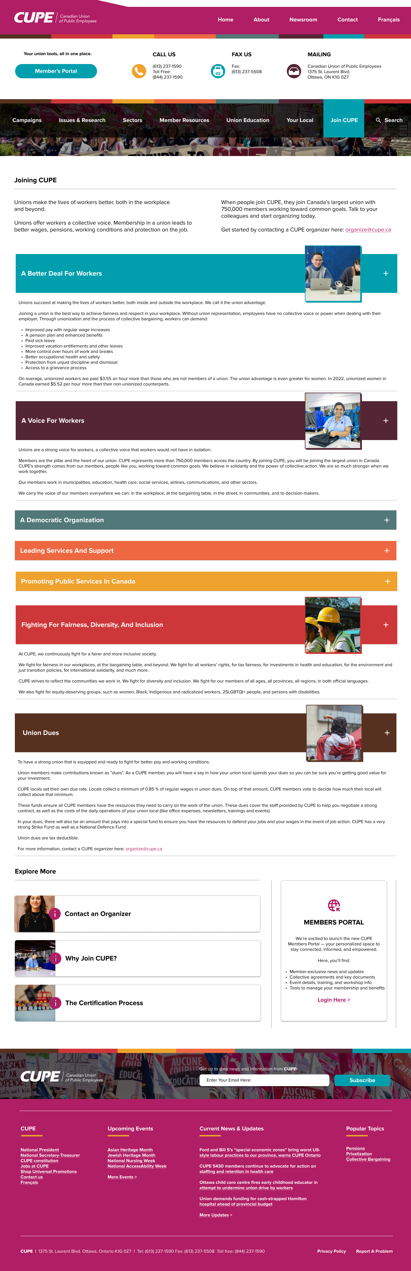 I created a comprehensive website redesign concept in Figma for our client, a local CUPE union, focusing on improving usability, accessibility, and member engagement. The design features a clean, modern layout with intuitive navigation to clearly communicate the union’s mission, news, and resources. A key part of the redesign includes a proposed secure members-only portal, allowing union members to access exclusive content such as documents, event information, and internal updates. The interactive Figma prototype was presented to the client so we could begin the process of WordPress development.