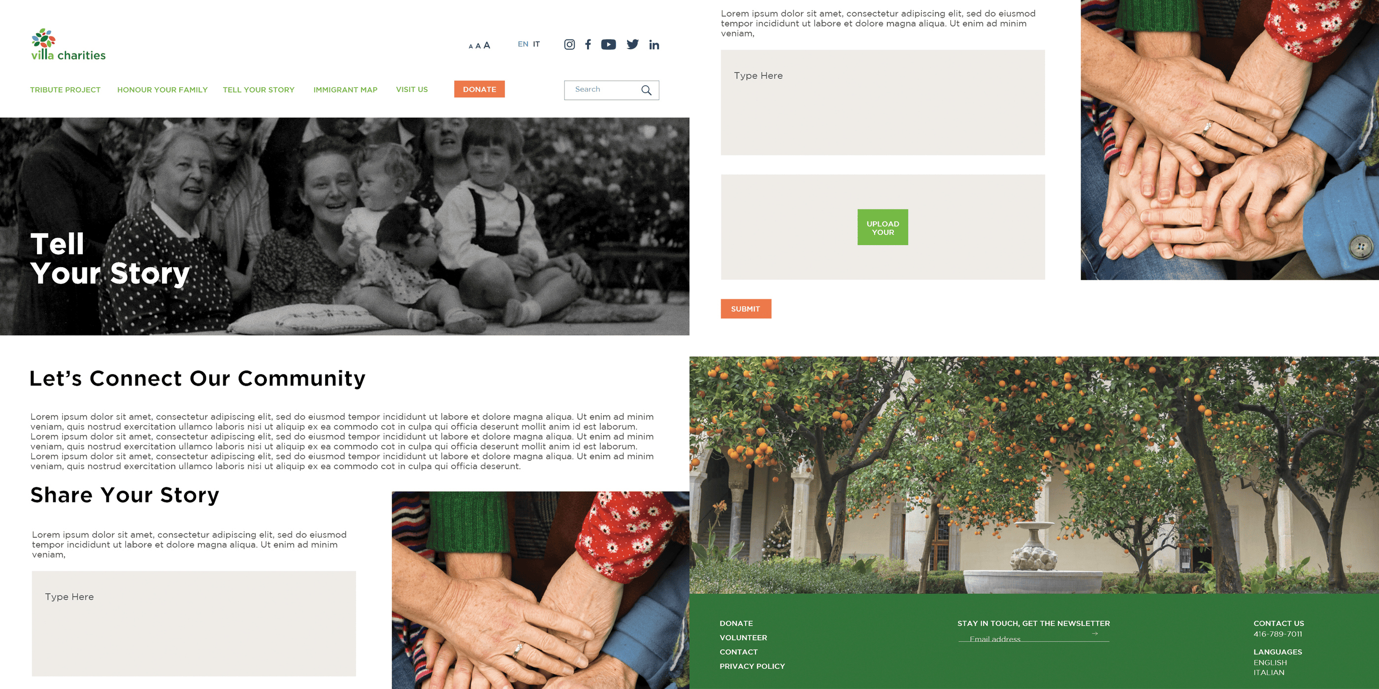 I collaborated on designing a website for VillaCharities, enabling users to upload their family history and purchase nameplates for the organization’s new “Tribute Wall.” The project focused on creating an intuitive, user-friendly interface that allowed individuals to easily share their stories and honour their loved ones through custom nameplates. By working closely with the team, we ensured the website reflected VillaCharities’ mission and provided a meaningful, engaging experience for users supporting the Tribute Wall initiative.