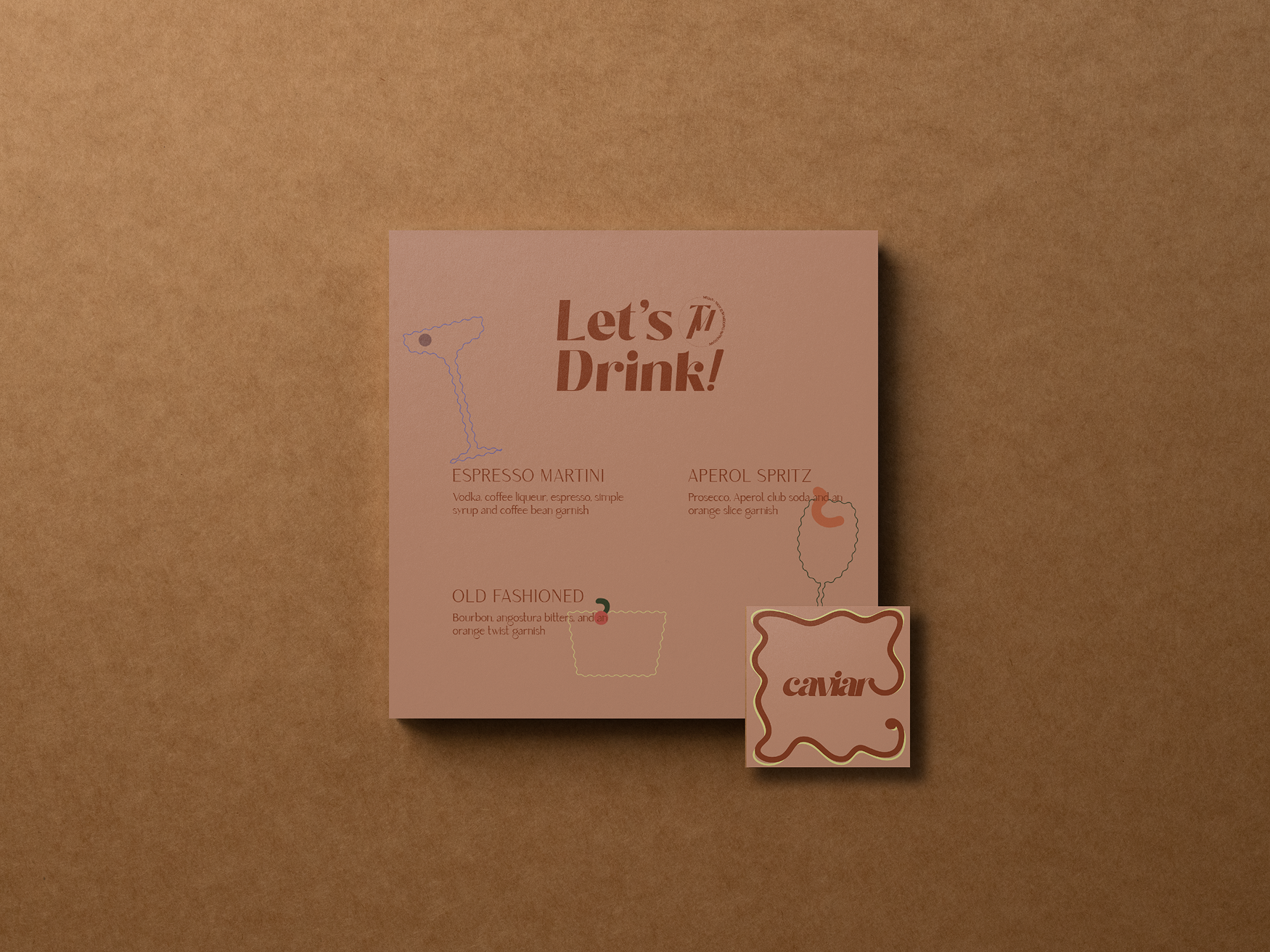 I designed custom wedding invitations, bar menus, and food cards that reflected the couple’s unique style and wedding theme. The invitations featured elegant typography and a refined color palette, setting the tone for the celebration.